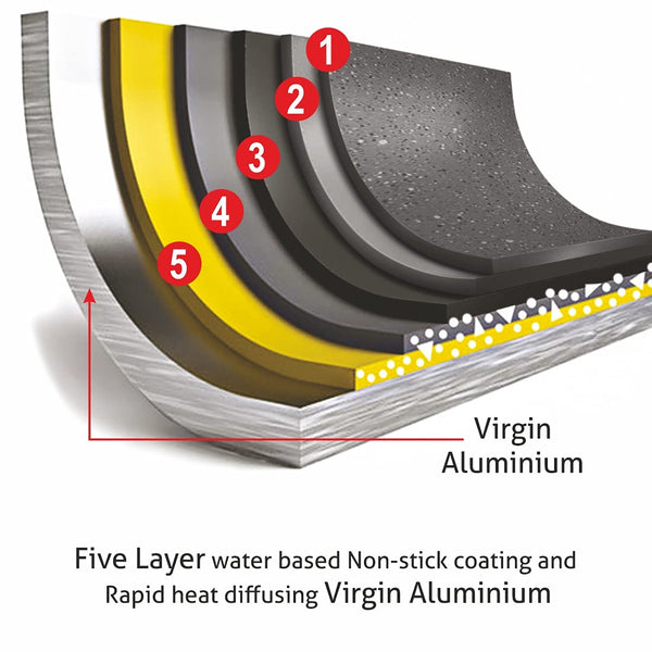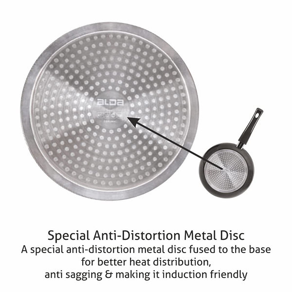 Details: The Alda non stick Marbello crepe pan is perfect for making crepes, pancakes, chilla, dosa and other foods. It is made of highly efficient five layer water based non stick coating. The body allows optimal heat distribution & rapid cooking. The surface has high level of scratch & wear resistance. The ergonomic cool touch handle provides a safe & comfortable grip while cooking.