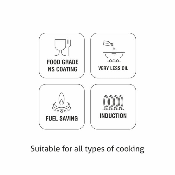 Details: "The Alda non-stick Marbello dosa tawa is perfect for making dosa, uttapam, and other similar foods. It is made of a highly efficient five-layer water-based non-stick coating. The body allows optimal heat distribution & rapid cooking. The surface has a high level of scratch & wear resistance. The ergonomic cool touch handle provides a safe & comfortable grip while cooking.