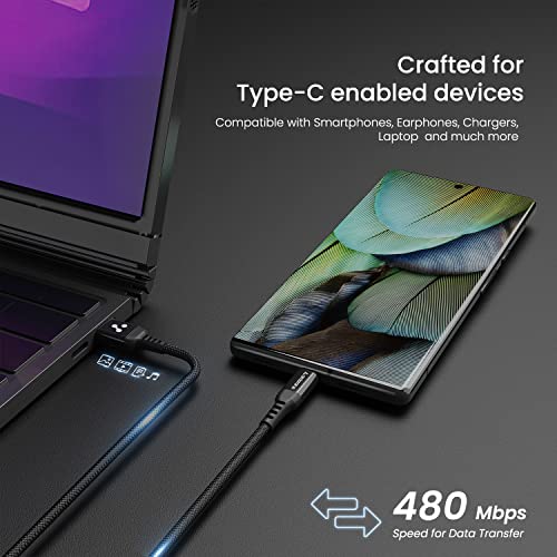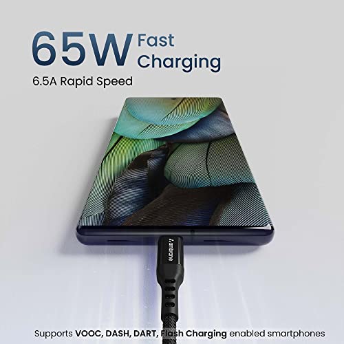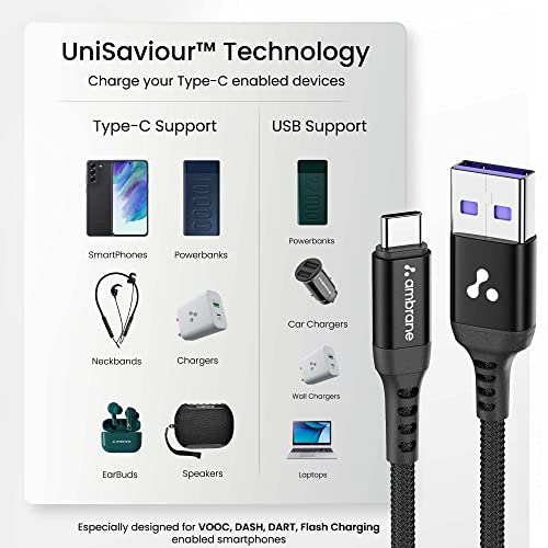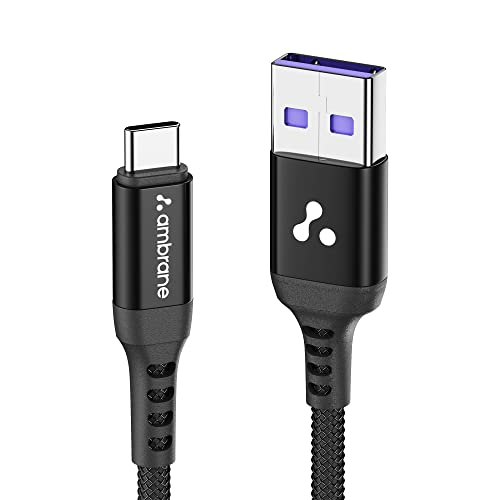 Ambrane Ultra Fast Type C Charging Cable, 65W VOOC Technology, Perfectly Compatible with Samsung, Mi, Realme, Oppo, Vivo, OnePlus, Nothing Devices, 480Mbps Data Sync, Braided, 1.2 M (ABCVS-12 Black)