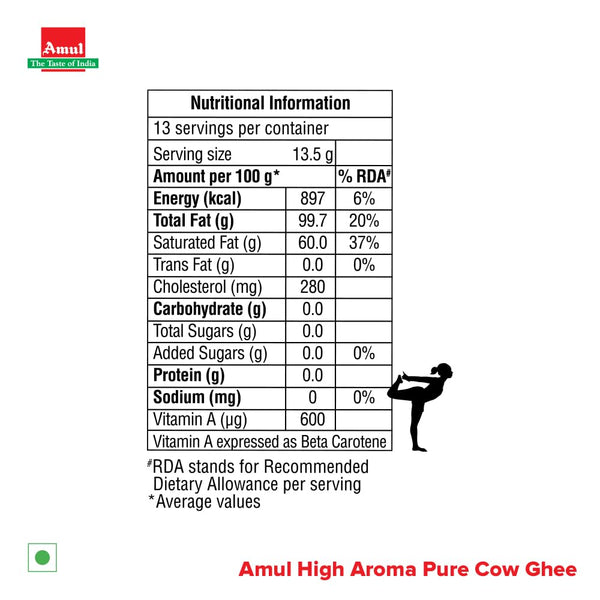 Details: Made of farm fresh milk, it has a rich aroma and granular texture. Pure cow ghee has wonderful taste and unique flavour and fragrance. It can be used to prepare different of dishes.