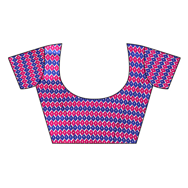 ANNI DESIGNER Women's Blue Mysore Silk Printed Saree with Blouse Piece(Sky Stripers Blue_Free Size)