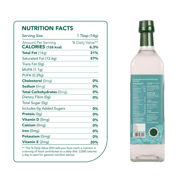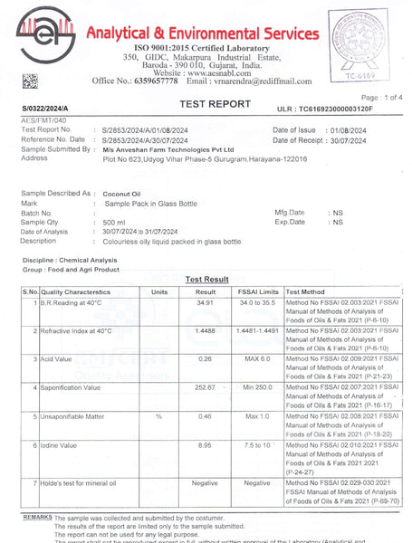 Anveshan Wood Pressed Coconut Oil - 1 Litre | Glass Bottle | Kolhu/Kacchi Ghani/Chekku | Natural | Chemical-Free | Coconut Oil for baby massage | Cold Pressed Coconut Oil for Cooking.
