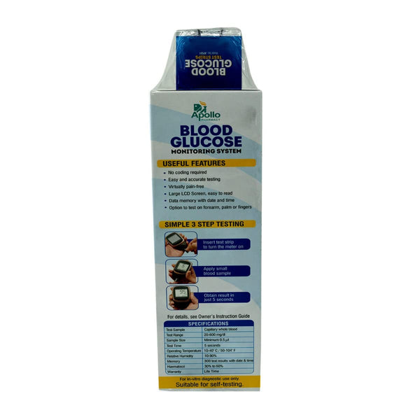 Apollo Pharmacy Blood Glucose Monitoring System APG01 with 25 Test Strips, 1 kit