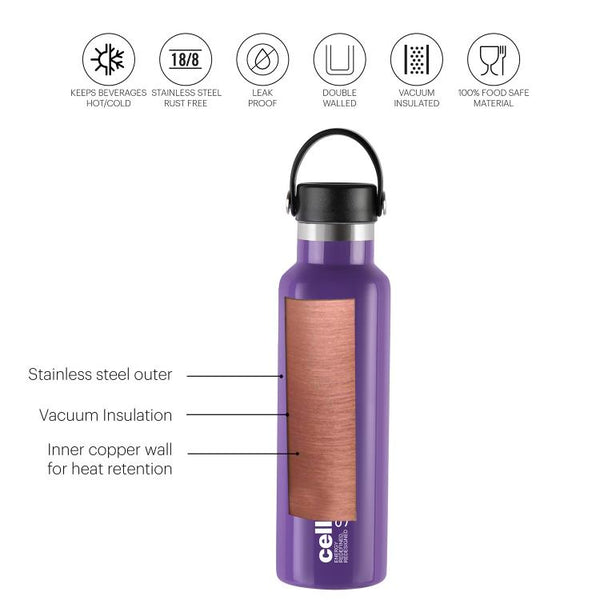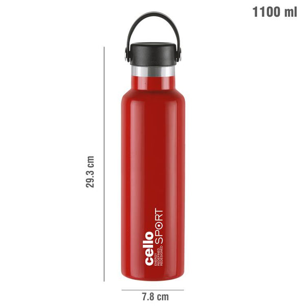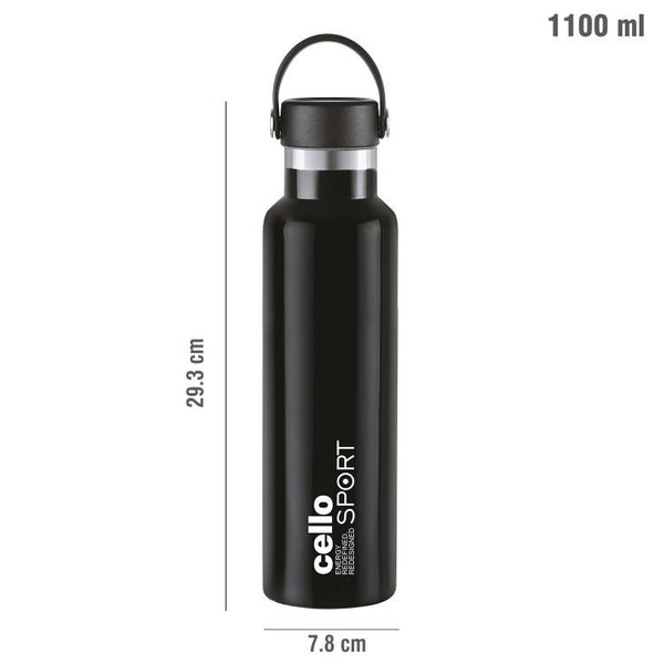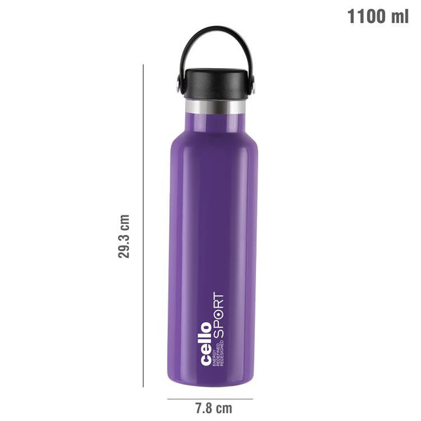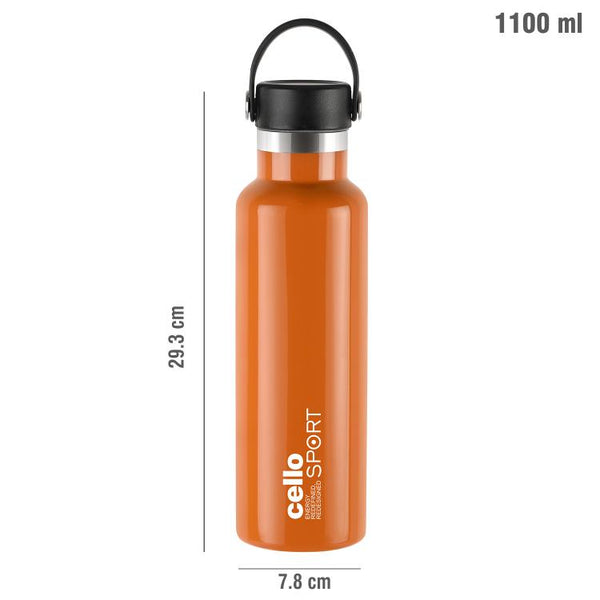 Introducing the Aqua Bliss Flask, an 1100ml Vacusteel Water Bottle, designed to revolutionize your drinkware collection. Available in a vibrant spectrum of colors, including black, blue, orange, red, and violet, this stainless steel flask not only adds a touch of style but also ensures your beverages stay perfectly hot or refreshingly cold with its advanced vacuum insulation technology. Crafted from food-grade stainless steel, the Cello 1100ml Vacusteel Flask guarantees both durability and beverage safety, making it your go-to choice for versatile and reliable hydration, regardless of the season or occasion.