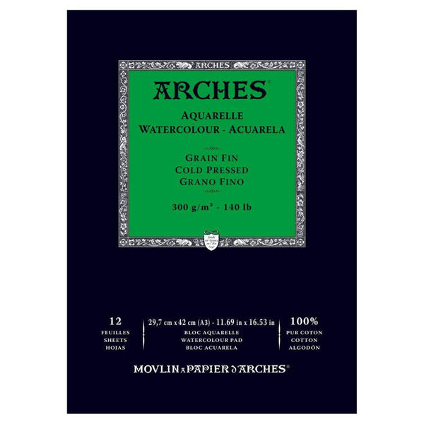 - Product: Watercolour Paper Pad, Texture: Cold Pressed, Colour: Natural White, Edges: 4 Cut Edges, Thickness: 300GSM, Size:A3.