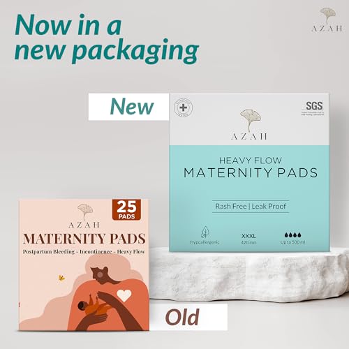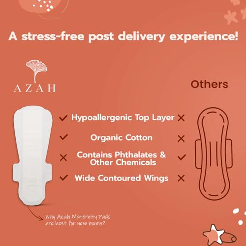 AZAH Maternity Pads after Delivery for Women (Box of 12 Pads) Ultra-Absorbent XXXL Pads | Organic Cotton Maternity Pads made for Heavy Flow, Postpartum Flow & Overnight Flow | Without Disposable Bags