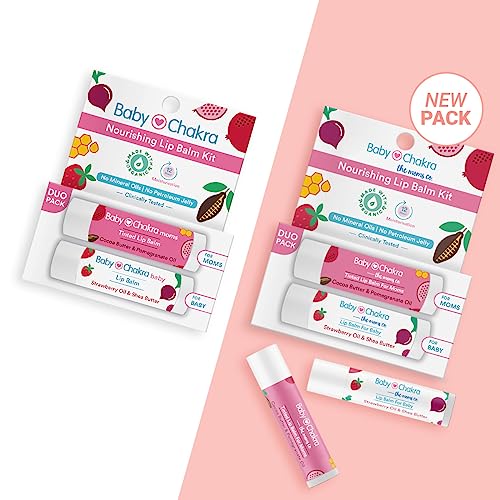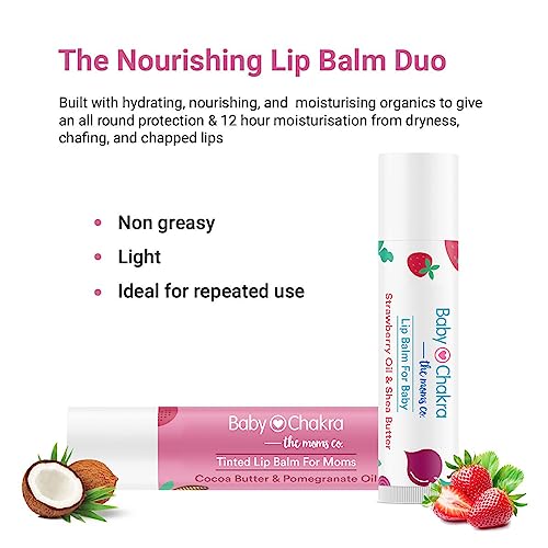 BabyChakra Nourishing Lip Balm Duo Pack for Women's & Babies/Kids, 100% Natural Ingredients, Long Lasting Non Greasy 12 Hours Moisturising, Cruelty Free (2x4.5 gm)