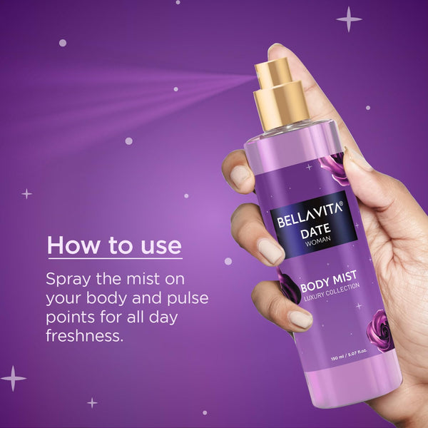 Bella Vita Luxury Date Women Body Spray Mist Perfume for Refreshing Floral & Vanilla Long Lasting Fragrance with Pink Pepper and Red Fruits 150 ml
