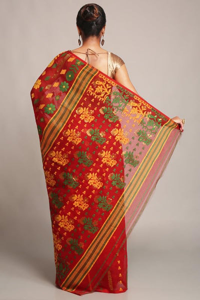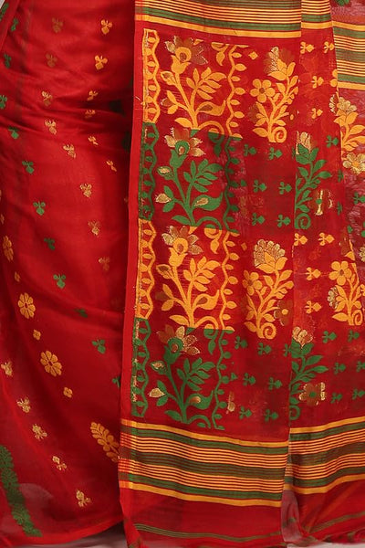 BENGAL HANDLOOM Women's Cotton Silk Dhakai Bbd3 Soft Jamdani Sarees - Yellow