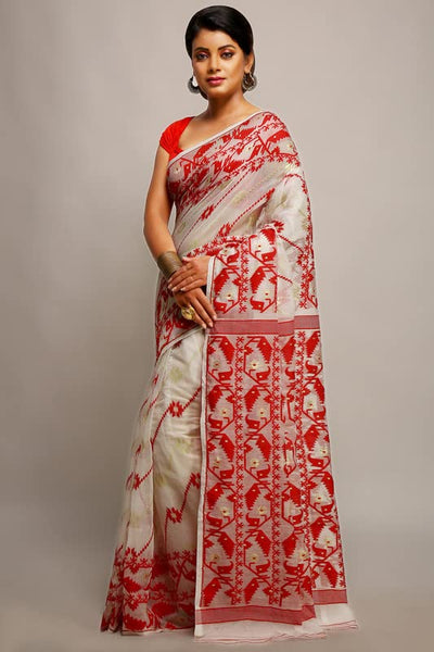 BENGAL HANDLOOM Women's Cotton Silk Exclusive Allover Soft Mod1 Jamdani Sarees, Multi