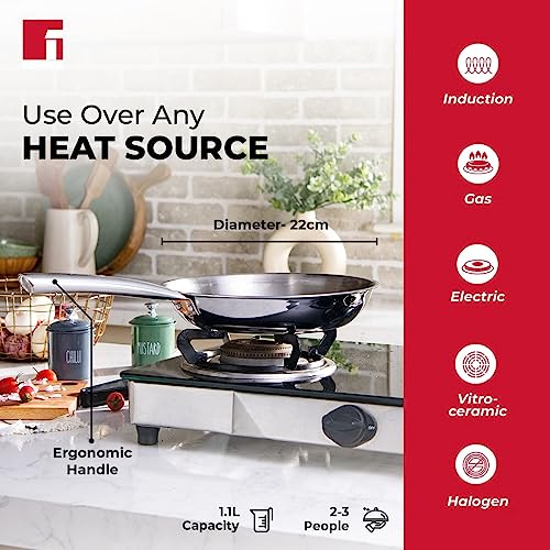 Bergner Tripro Triply Stainless Steel Frypan/ Skillet, 22 cm, 1.1 Litres, Ergonomic Stay Cool Handle, Flared Rim, Efficient and Fast Heating, Induction, Gas and Metal Spatula Friendly