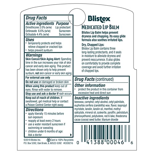 Blistex Medicated Lip Balm SPF 15, 3 Count