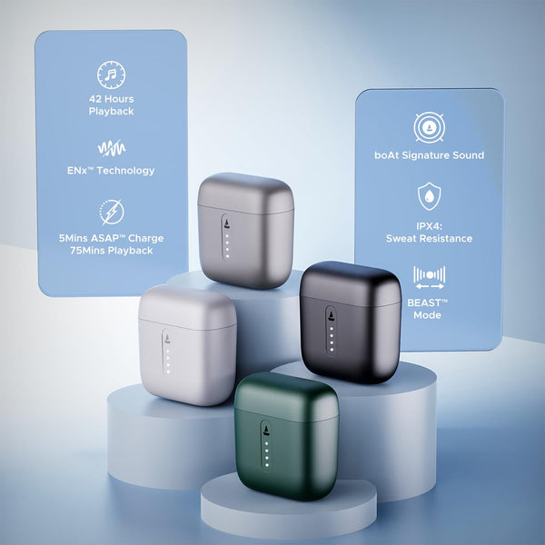 boAt Airdopes 141 Bluetooth TWS Earbuds with 42H Playtime,Low Latency Mode for Gaming, ENx Tech, IWP, IPX4 Water Resistance, Smooth Touch Controls(Bold Black)