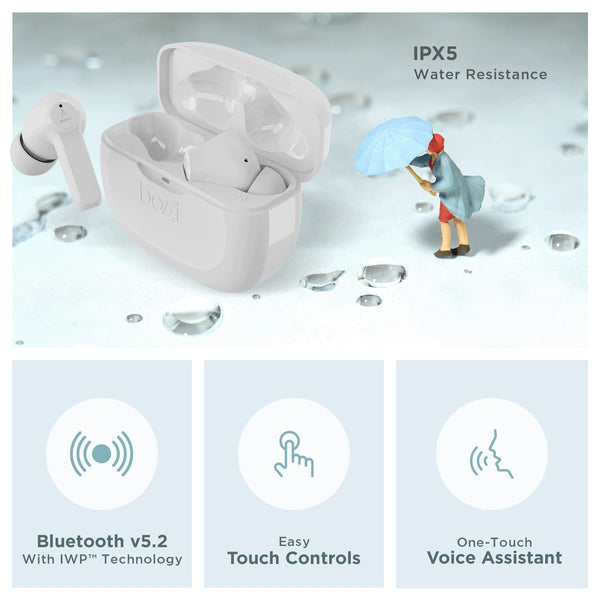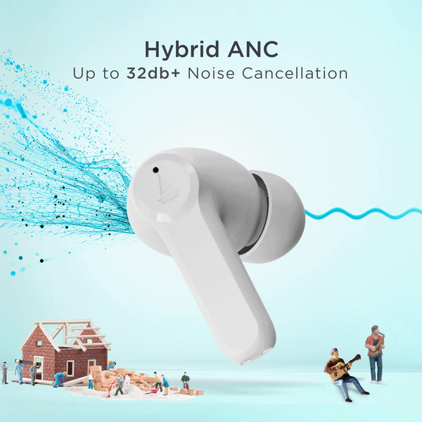 boAt Airdopes 393ANC True Wireless in Ear Earbuds with 32dB Hybrid ANC, Quad Mics with ENx™ Tech, 30 Hours Playback,Beast™ Mode,ASAP™ Charge,Ambient Mode,Bluetooth v5.2 IWP™, IPX5(Ivory White)