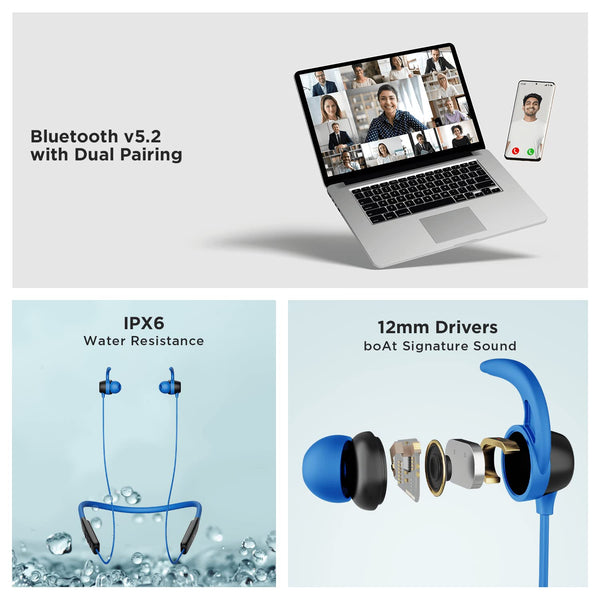 boAt Rockerz 255 Neo in-Ear Bluetooth Neckband with Mic with ENx™ Tech, Smart Magnetic Buds, ASAP™ Charge, Upto 25 Hours Playback, 12MM Drivers, Beast™ Mode, Dual Pairing (Furious Blue)