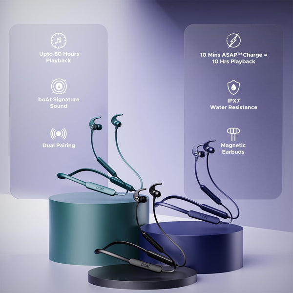 boAt Rockerz 255 Pro+ Bluetooth Neckband with Upto 60 Hours Playback, ASAP Charge, IPX7, Dual Pairing and Bluetooth v5.2(Teal Green)