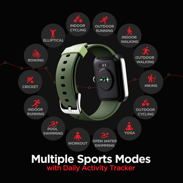 boAt Xtend Smart Watch with Alexa Built-in, 1.69” HD Display, Multiple Watch Faces, Stress Monitor, HR & SpO2 Monitoring, 14 Sports Modes, Sleep Monitor, 5 ATM & 7 Days Battery Life(Olive Green)