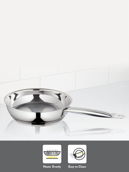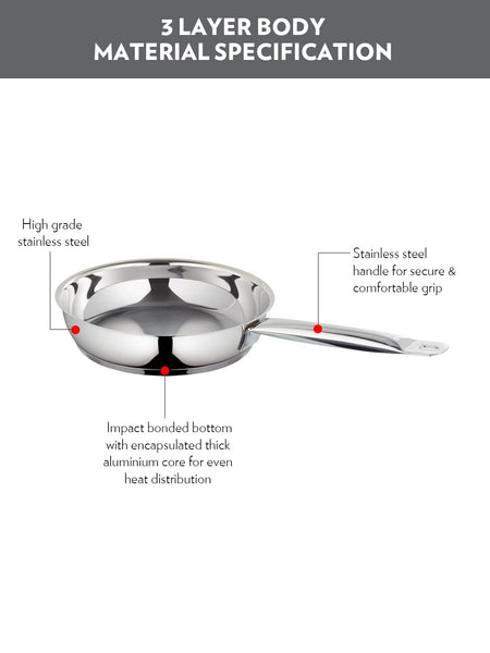 Borosil Cookfresh Stainless Steel Frying Pan 2.2 L (24 cm) | Impact Bonded Tri-ply Bottom | Gas Stove, Induction, Hot Plate Friendly | Uniform Heating, Cooltouch Handle | Skillet Fry Pan