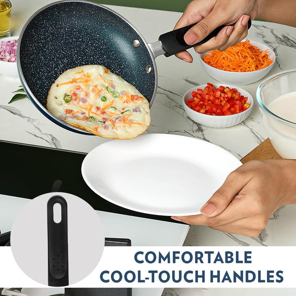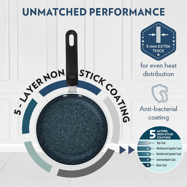 Borosil ProChef Non-Stick Mini Fry Pan 18 cm | Gas Stove Compatible, Thick Uniform Body for Even Heating | PFOA Free, Blue Exterior, Stir Frying Pan for Eggs, Cutlets, 1 Year Warranty