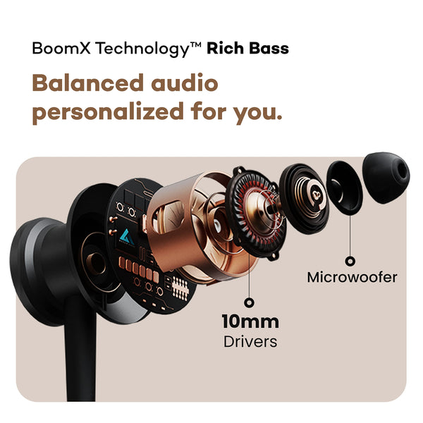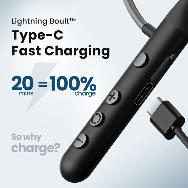 Boult Audio YCharge Wireless in Ear Bluetooth Earphones with 12H Playtime, Type-C Fast Charging (20Min=100% Playtime), Pro+ Calling Mic, Made in India, 12mm Bass Drivers, IPX5 Neckband (Black)