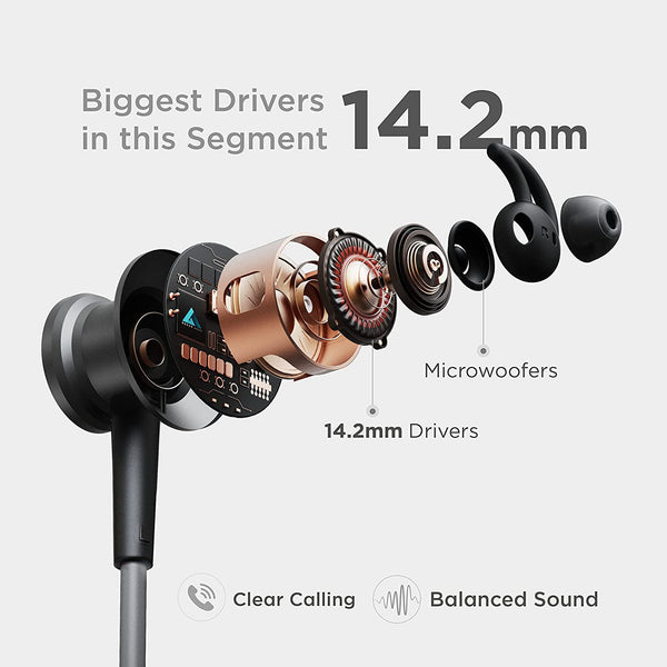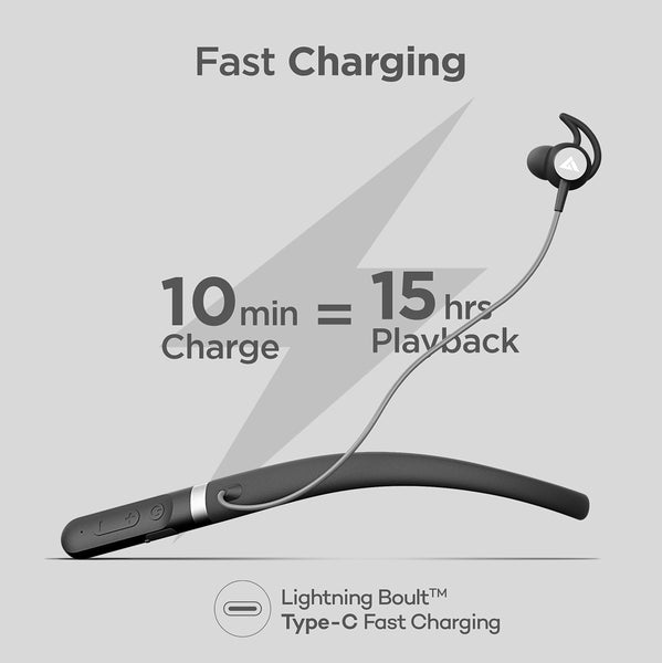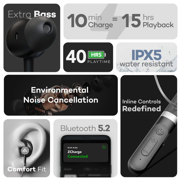 Boult Audio ZCharge Wireless in Ear Bluetooth Neckband with ENC Mic, 40H Playtime, Type-C Fast Charging (10Mins=15Hrs Playtime), Dual Pairing, Made in India, Biggest 14.2mm Drivers Ear Phones (Black)