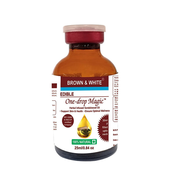 Brown & White Herbal Sandalwood Oil (One-Drop Magic) with Carom, Linseeds & Prunus dulcis extracts, 100% Veg - 25ml