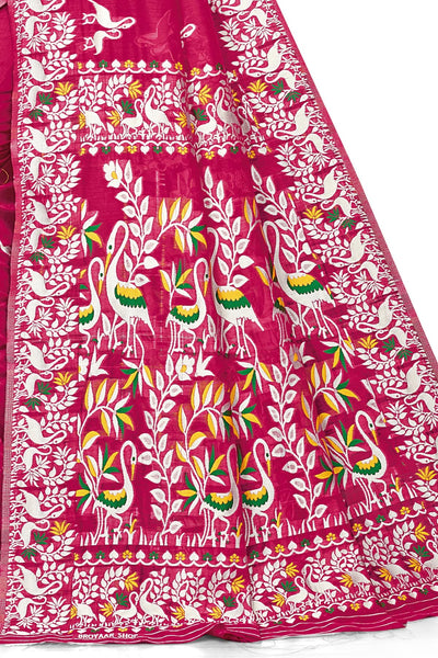 BROYAAR SHOP Jamdani Designer Cotton Blend Silk Saree for Women Without Blouse (Rani)