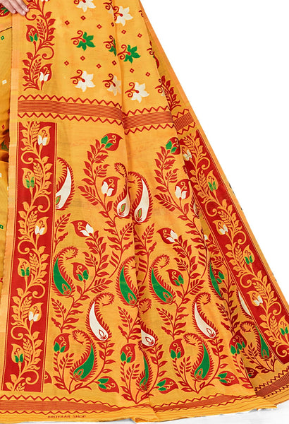 BROYAAR SHOP Women Soft Resham Dhakai Jamdani Relaxed Fit Blend Silk Saree Whole Body Design Without Regular Fit Blouse Piece(Gold)