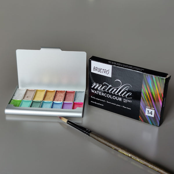 Brustro Metallic Watercolours are made of mica pigments and gum arabic. 14 Richly pigmented colours with a beautiful metallic sheen.
