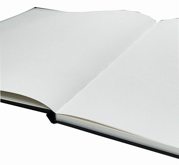- Stitched bound opens flat to facilitate drawing across both pages, with an elastic strap