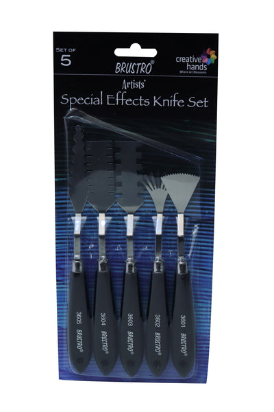 - Great assortment of 5 SPECIAL EFFECTS palette knives for Mixing, Spreading and Scumbling,