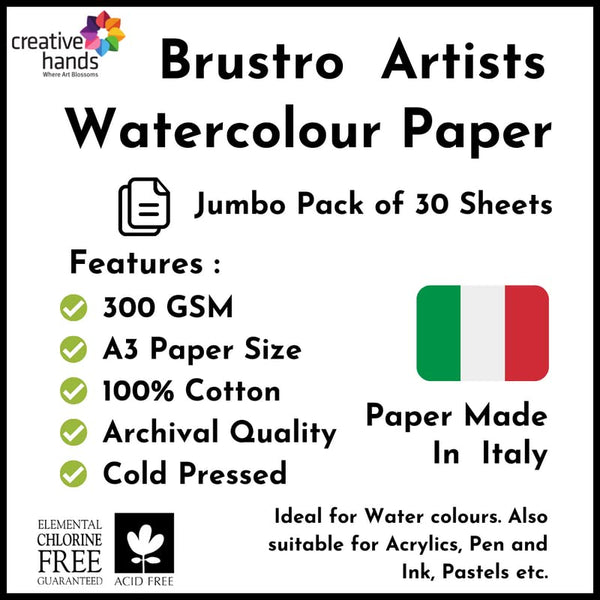 100% Cotton , chlorine & acid Free. Professional quality mould made, Traditional white without optical brighteners . Ideal for all fine art techniques - wet and dry , internally and externally sized for ideal absorbance .Â