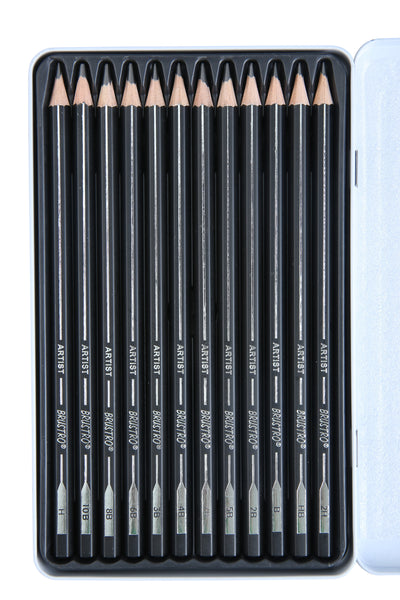 Our premium graphite pencil set! With 12 pre-sharpened pencils ranging from 10B to 2H, housed in an attractive tin box, this set is perfect for artists and learners alike. Crafted from lightweight wood with break-resistant leads, our pencils offer a comfortable grip and gentle application, ideal for all types of sketches and illustrations. Unlock your creativity with ease and precision.