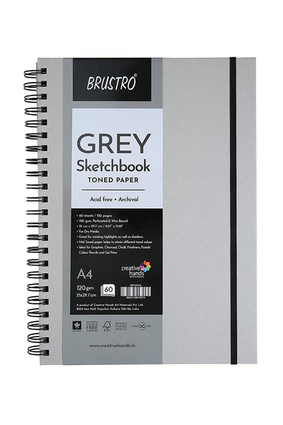 Ideal for Graphite Charcoal Chalk Fineliners Pastels Colour pencils and Gel pens.Great for creating highlights as well as shadows.Ideal for mastering light techniques and dark media.Mid toned paper helps to attain different tonal values.Size A4, 120GSM (60 Sheets), 120 Pages