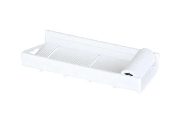 A plastic ribbed tool with roller which runs in channels, gripping and squeezing paint up to 200ml in size from the bottom of the tube.