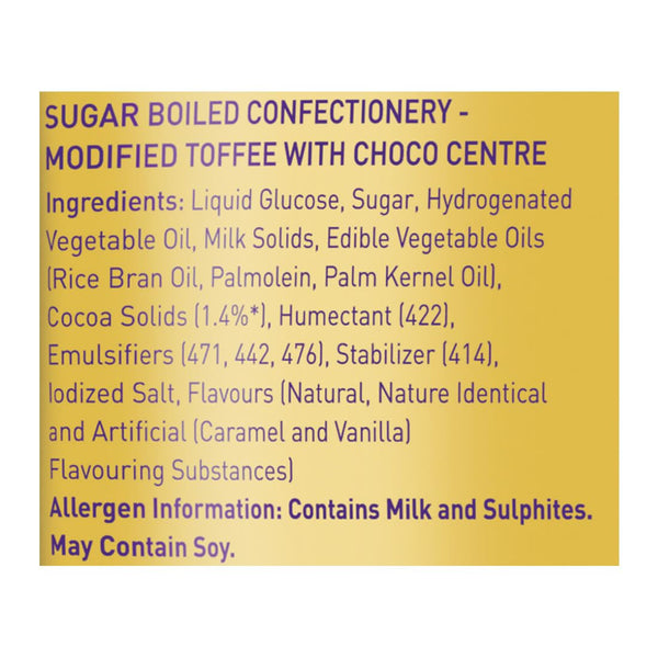 Details: Bring home your favourite Cadbury Choclairs Gold in a super saver family pack.This candy will take care of all your sweet cravings, be it small moments of self-indulgence or fun with friends and family.The rich Cadbury chocolate filling in a delicious caramel casing will just leave you wanting for more.This chocolate pack is perfect for Birthday parties or as a chocolate gift pack for gifting on special occasions.This pack comes with 100 Cadbury Choclairs Gold candies.