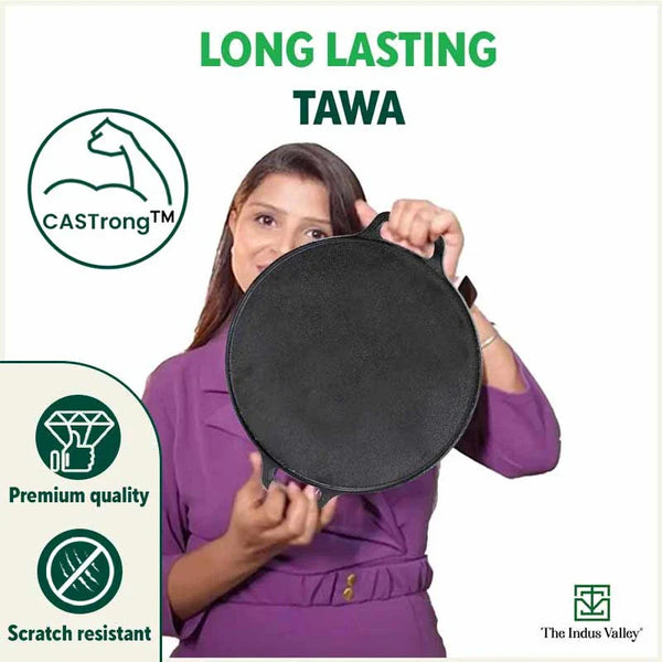 CASTrong Cast Iron Roti/Dosa Tawa,Pre-seasoned, Nonstick, 100% Pure, Toxin-free, Induction, 30.2cm, 2.4kg