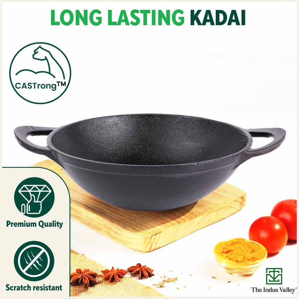 CASTrong Cast Iron Cookware Set - Kadai [1.4L]+Kadai [2.2L],Pre-seasoned,100% Pure,Toxin-free