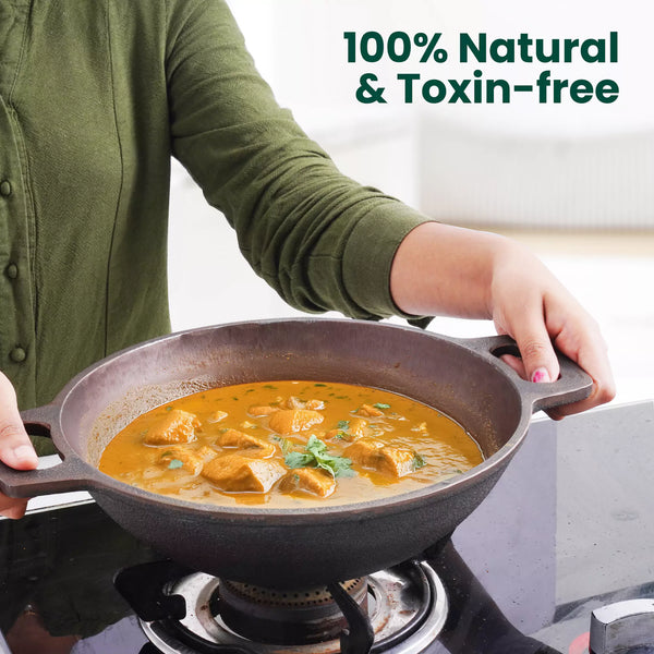💪100% HEALTHY: The Indus Valley Premium Thick Cast Iron Cookware Set - Cast Iron Tawa + Cast Iron Skillet/Fry Pan + Super Smooth Cast Iron Kadai (Wok Model) - is 100% natural - made from pure cast iron.