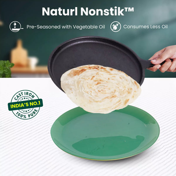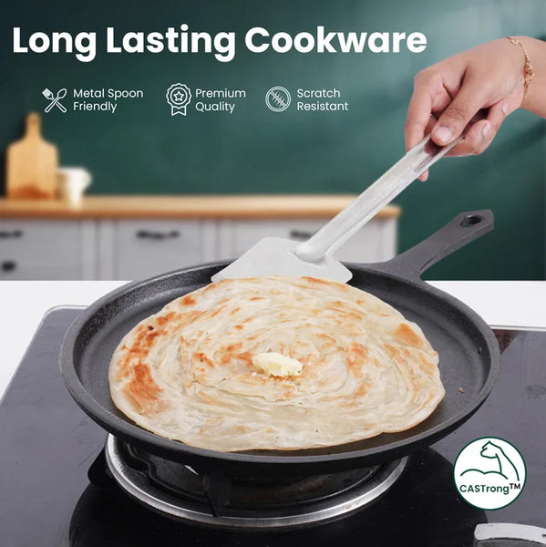 🍳COOKS ALL YOUR FAVOURITE DISHES: The pre seasoned cast iron kadai is ideal for making dal, sabzi, paneer masala, samosas, etc. The cast iron tawa is useful for making dosa, roti, paratha, omelette, etc. Whereas the cast iron skillet or frying pan is ideal to make paneer tikka, chicken curry, sandwich, etc.