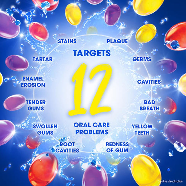 Details: TRY NEW CLOSEUP COMPLETE FRESH PROTECTION TOOTHPASTE WITH MULTIVITAMIN FORMULA. IT TAKES CARE OF YOUR IMPORTANT ORAL CARE NEEDS. IT FIGHTS AGAINST 12 ORAL CARE PROBLEMS- STAINS,PLAQUE,GERMS,CAVITIES,BAD BREATH,YELLOW TEETH,REDNESS OF GUM, TARTAR, ENAMEL EROSION, TENDER GUMS, SWOLLEN GUMS AND ROOT CAVITIES. GIVING YOU 12 TIMES BETTER PROTECTION THAN ORDINARY TOOTHPASTES. NOW GIVE YOUR MOUTH CLOSEUP'S COMPLETE FRESH PROTECTION EVERY MORNING WITH OUR MOST ADVANCED FORMULATION YET.