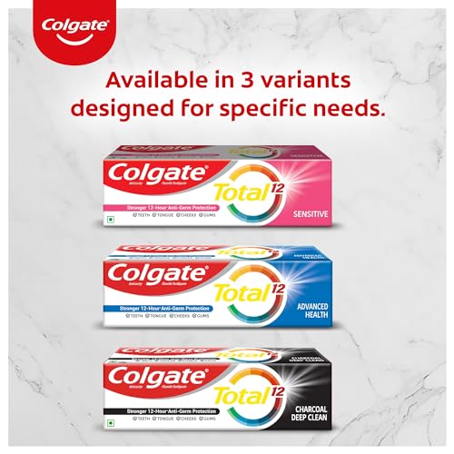 Details: Only 20% of the germs in your mouth are on your teeth, the rest 80% are on gums, tongue and cheeks. Colgate Total antibacterial toothpaste fights germs on teeth, tongue, cheeks, and gums giving you a Whole Mouth Health for 12 hours. Its dual Zinc Arginine technology actively seeks out bacteria in your mouth forming a protective barrier. Colgate Total Advanced Health toothpaste strengthens your teeth by re-mineralizing weakened enamel. It fights plaque to keep your gums healthy and repairs early teeth & gum damage, all to give you a healthier & whiter smile. Colgate toothpaste not only does it fight plaque between your teeth and in all those hard to reach spaces, but also fights bacteria on your tongue, cheeks, and gums leaving your mouth with a fresh breath. Moisturise your brush with water. Put a pea size amount of our Colgate toothpaste on the head of the toothbrush. Insert the toothbrush into your mouth & use gentle, short strokes to brush your teeth. For optimal results, brush twice daily for 2min. Our Colgate Anti-Bacterial toothpaste is certified by the Indian Dental Association and responsibly sourced and made. It is gluten free.