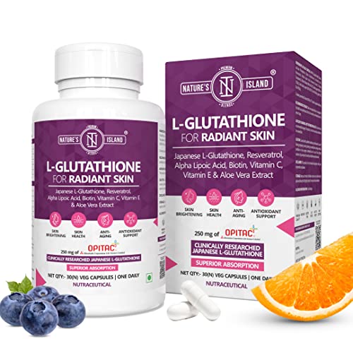 Nature's Island Japanese L-Glutathione with Collagen Builder, Vitamin C, E, Biotin, Alpha Lipoic Acid, Aloe Vera -30 Veg Capsules