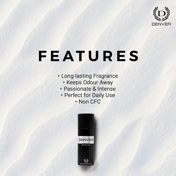 Details: Deodorant which is a personal care product used to prevent body odour. Deodorants are available in various forms such as sprays, roll-ons, sticks etc. Men's deodorants are specifically formulated to address the body odor concerns . Some deodorants may be designed to provide a long-lasting protection against sweat and odor, while others may be marketed as gentle or sensitive skin formulations. It's important to choose a deodorant that suits your skin type, as some formulations may contain harsh chemicals that can cause irritation or allergic reactions. DENVER deodorant body spray for men with a carefully blended fragrance mix and long lasting deo protection against body odours, to keep you delightfully fresh and confident throughout the day. The essential products you need to start your perfect day with freshness. Get the wonderful, smooth and perfect experience with exclusive range from a renowned brand DENVER.