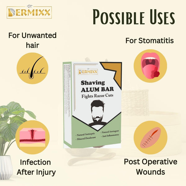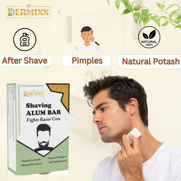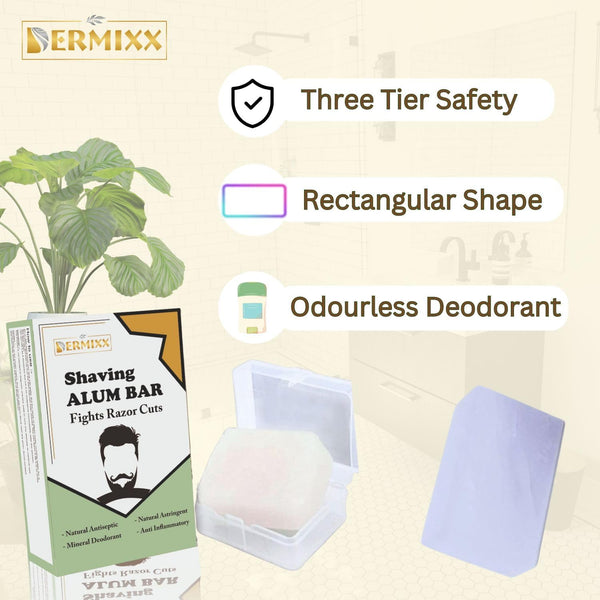 DERMIXX Alum Stone With Case-Fitkari Stone After Shave, Pure & Natural Alum Bar For Underarm Roll On Women, Travel Essentials For Men, Chemical Free Fitkari Alum Stone, Travel Soap, 100 Gm
