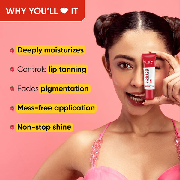 Dot & Key Gloss Boss Lip Duo | Strawberry Crush SPF 30 Lip Balm 12gm & Cocoa Mint SPF 30 Lip Balm 12gm | Sun Protected Tinted Lip Balm for Women | Fades Pigmentation | Moisturizes Dry & Flaky Lips