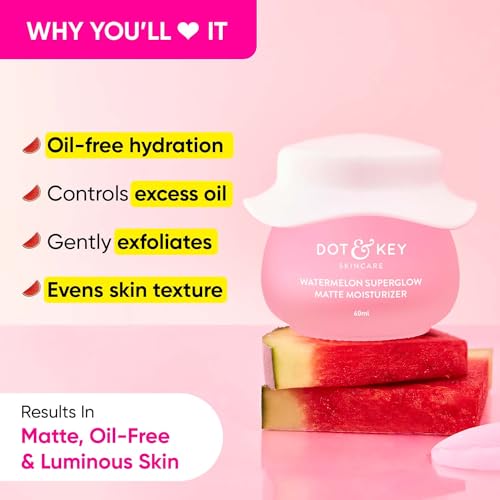 DOT & KEY Watermelon Superglow Matte Oil Free Moisturizer For Face With Watermelon Extracts | Lightweight Gel, Controls Excess Oil, Hydrates & Plumps Skin, With Glycolic Acid For Oily Skin | 60Ml