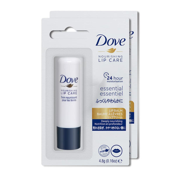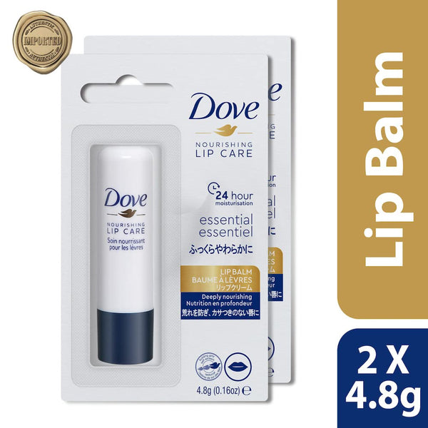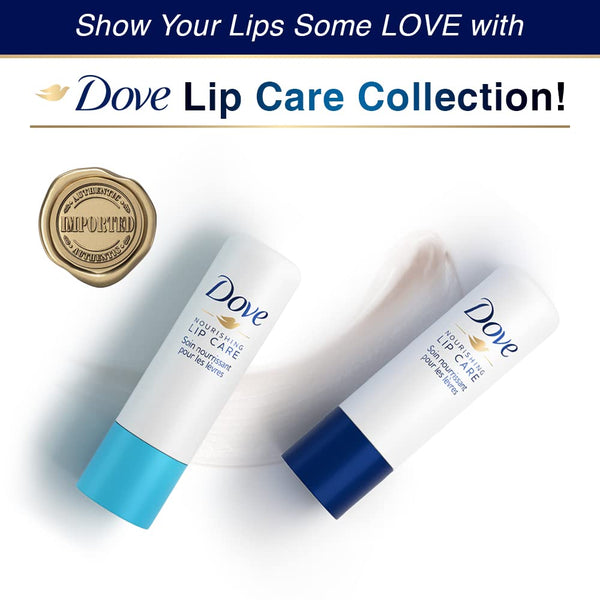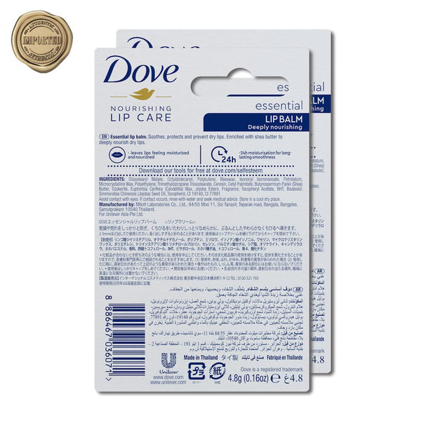 Dove Essential Nourishing Lip Care with Jojoba oil and Shea butter extract,Long lasting Lip Balm, 24 hours Hydration, Imported,4.8gm,PO2, Blue