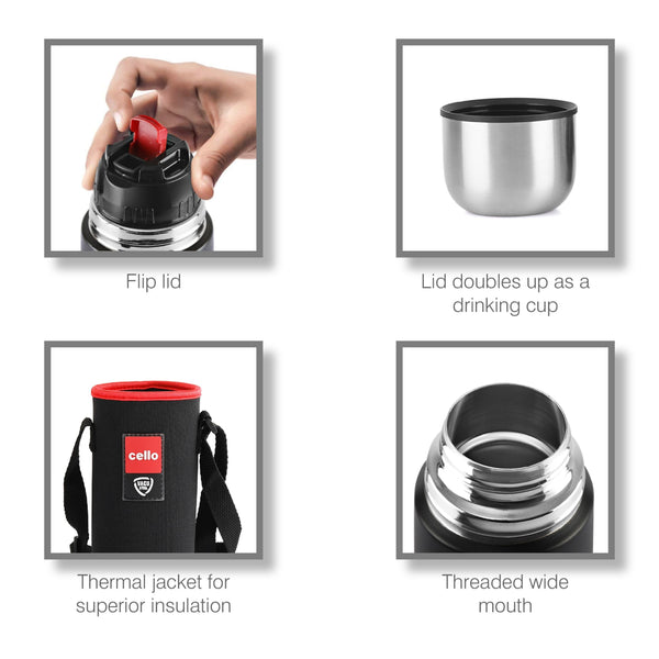 Duro Flip Flask, Vacusteel Water Bottle with Thermal Jacket, 750ml