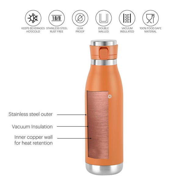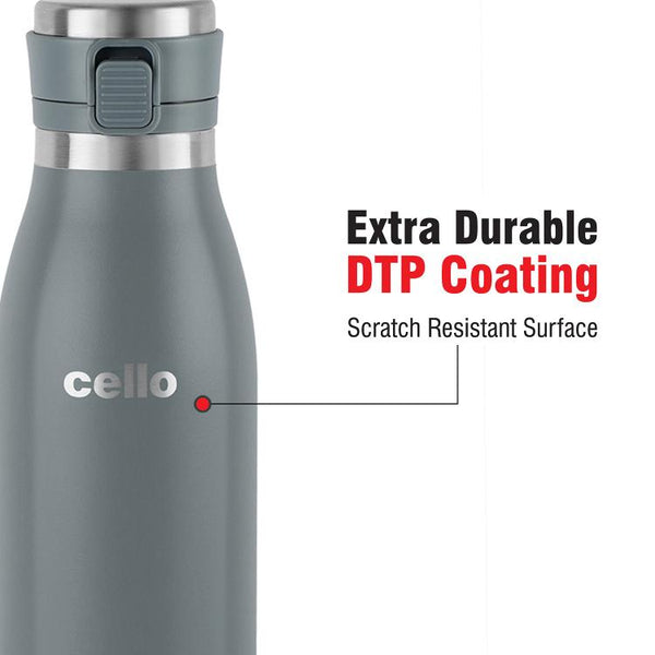 For the adventurer at heart, Cello presents the Duro Series of Tuff Steel insulated bottles that you can easily carry with you on treks, hiking, cycling, to the gym, school, or office. Designed with new and advanced DTP coating the long lasting color of the bottles will not fade or scratch with use. Enjoy an active lifestyle while your bottle stays brand new, even with everyday wear and tear.